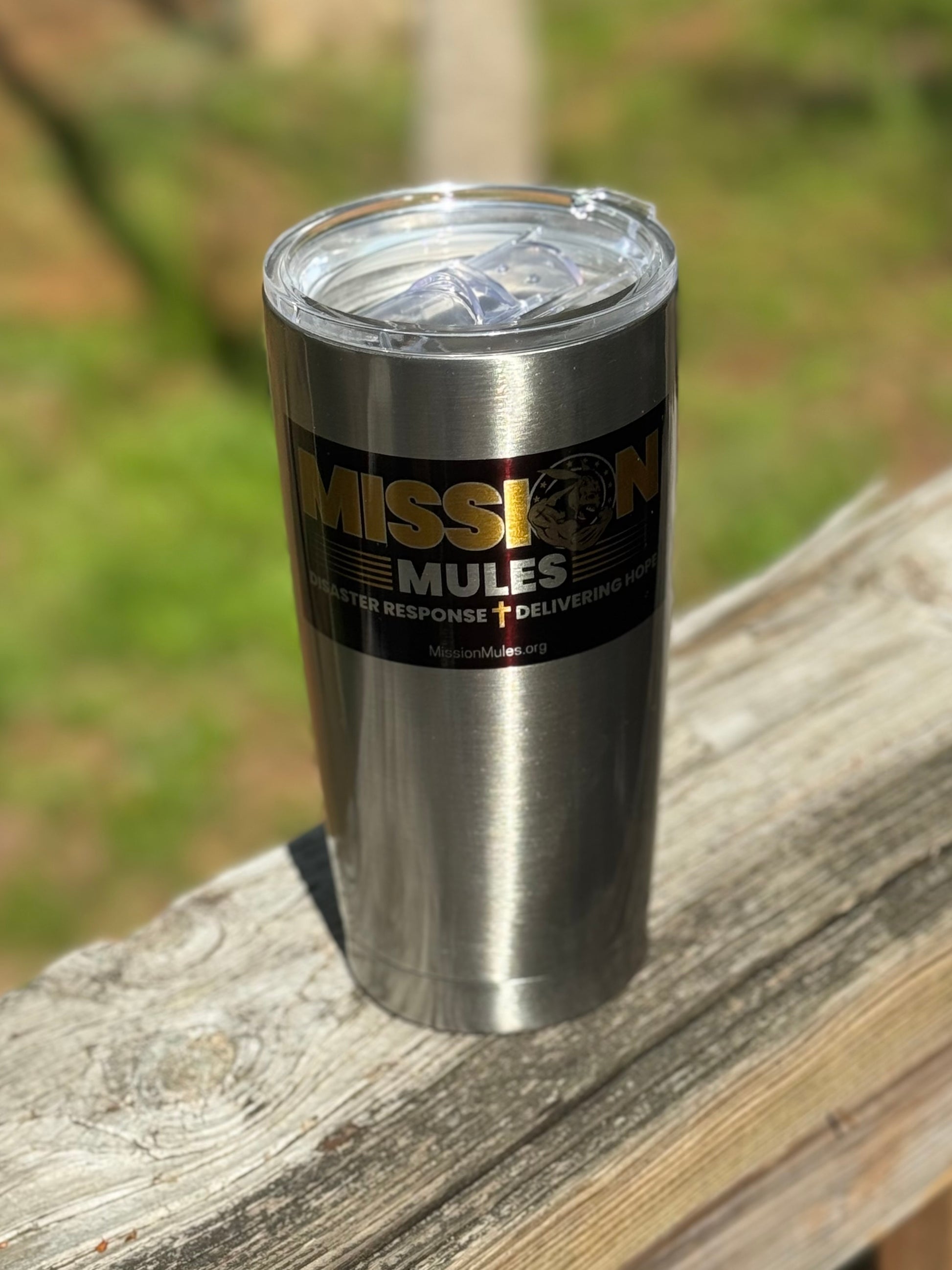 Mission Mule Tumbler comes in a Stainless Steel or White color! Your hot or could beverage will go nicely in the Tumbler of your choice!
